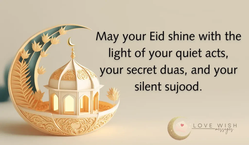 • “May your Eid shine with the light of your quiet acts, your secret duas, and your silent sujood.”