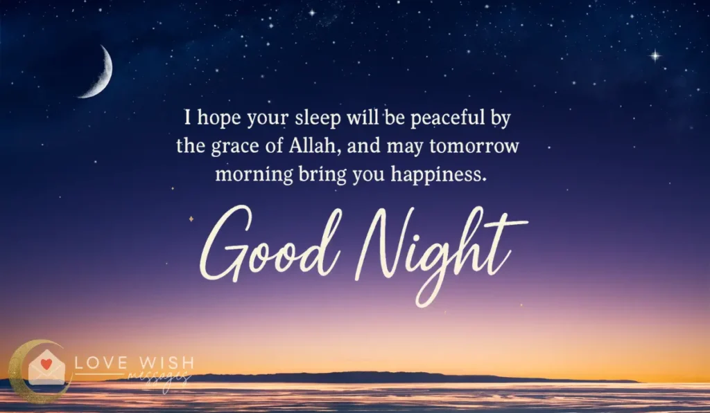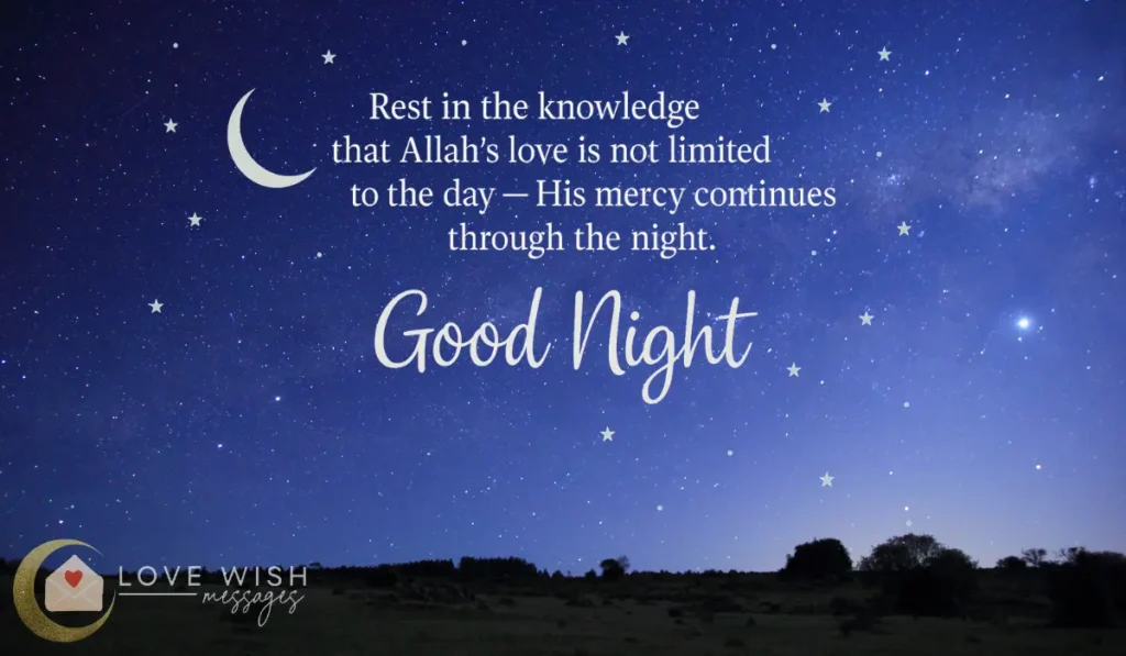 Not every good night message needs to be personal to be powerful. Sometimes, a gentle, faith-filled wish is all it takes to remind someone that Allah is near. And that night can be a time of healing, not fear. These peaceful Islamic good night wishes are perfect for sharing in groups, on status updates, or in quiet messages to those you care about.