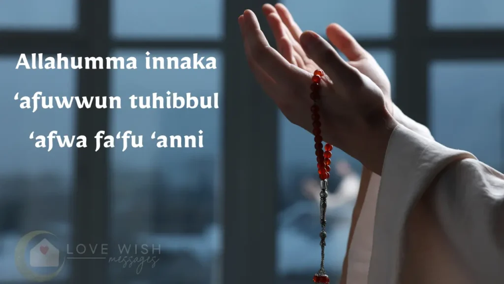 Allahumma innaka ‘afuwwun tuhibbul ‘afwa fa‘fu ‘anni