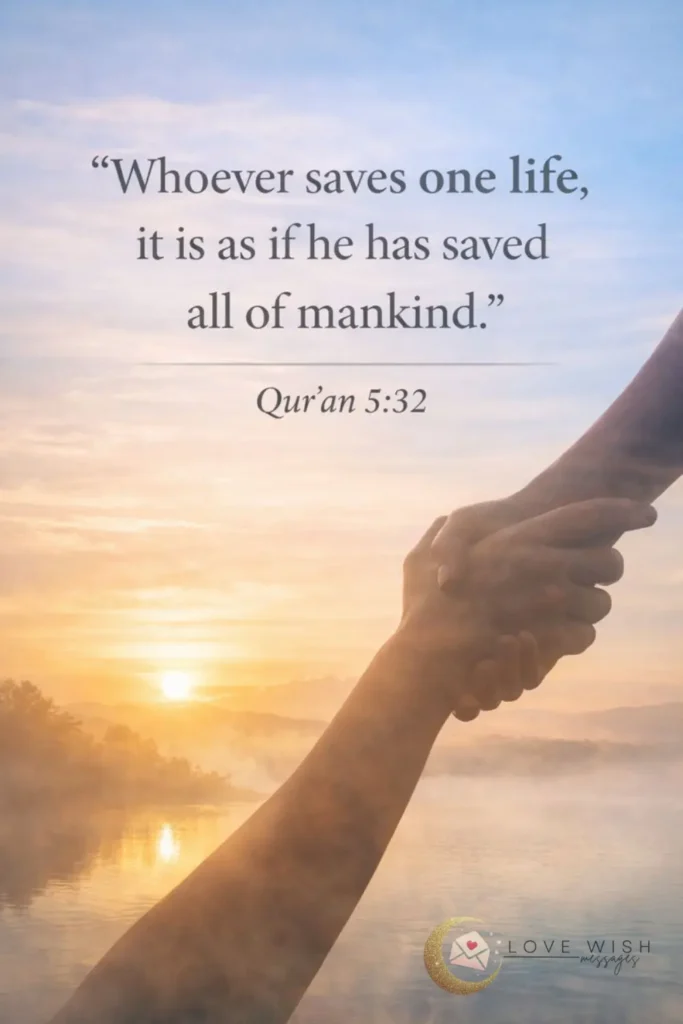 Islam teaches that saving one life is equal to saving all of humanity. This principle comes directly from the Qur’an in Surah Al-Ma’idah (5:32), which emphasizes the immense value and sanctity of every human soul. Saving one life in Islam is considered a sacred moral responsibility and one of the highest acts of righteousness.